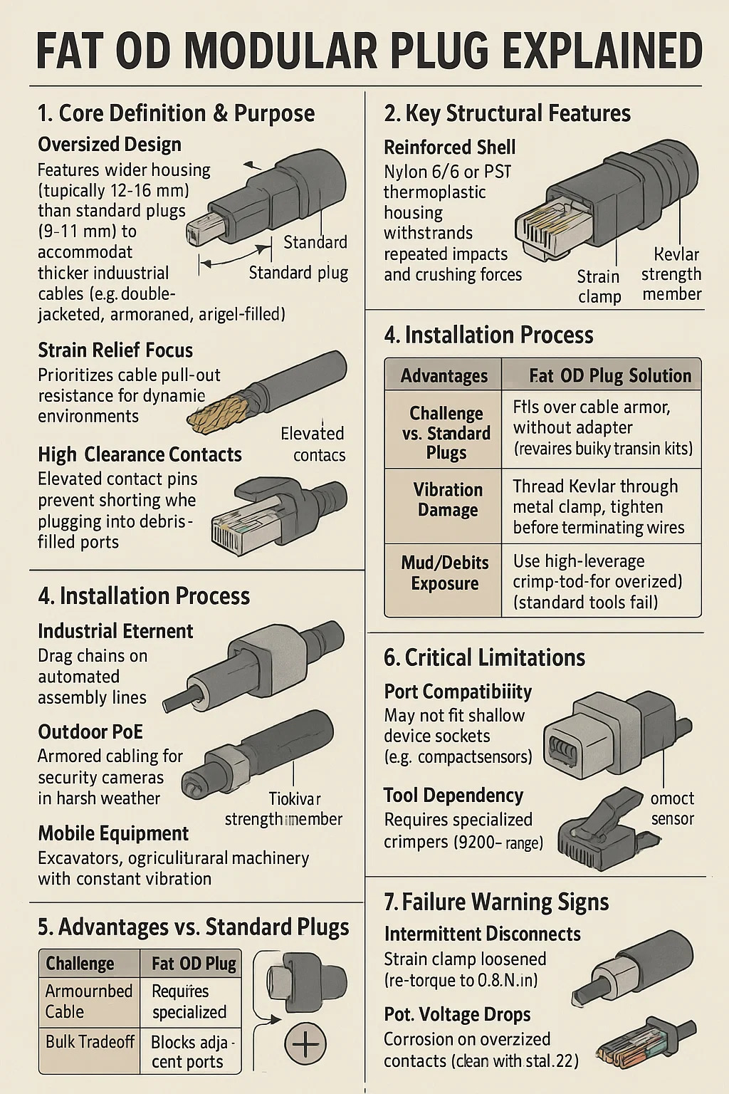 Nadmerný dizajn: Obsahuje širšie puzdro (zvyčajne priemer 12–16 mm) ako štandardné zástrčky (9–11 mm) na prispôsobenie silnejších priemyselných káblov (napr. Dvojité, obrnené alebo gélové).