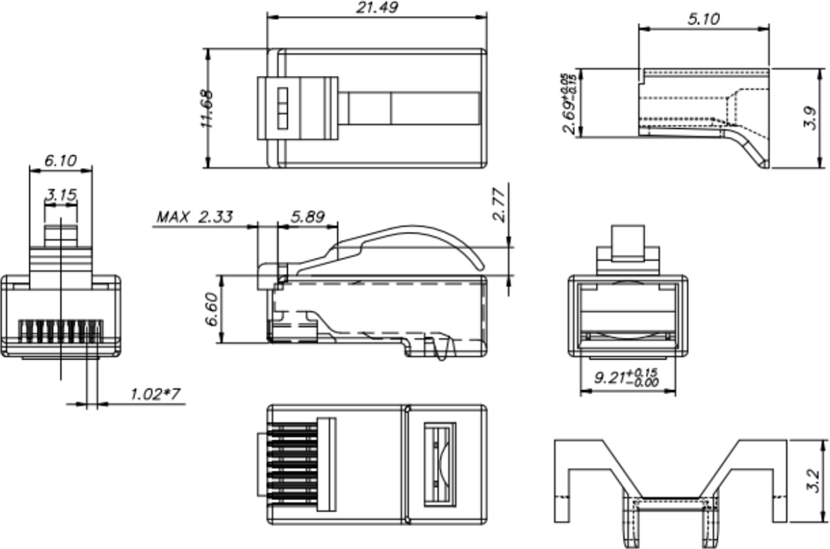 EXW vysoko kvalitné Cat.6A RJ45 8P8C UTP Arch Modular Plugs sú vyrobené z dovážaných surovín.